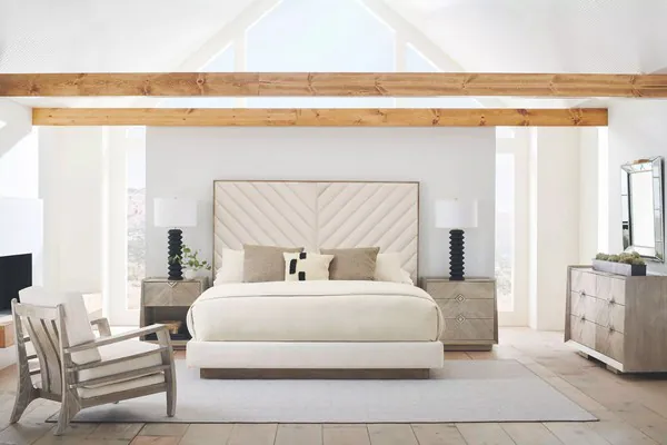 Meet U In The Middle Ash Driftwood King Upholstered Panel Bed