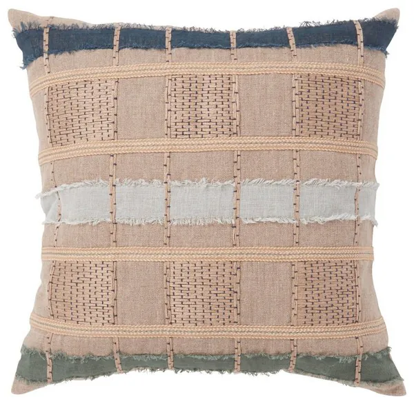 Melange Stratton Natural and Blue Square Accent Pillow