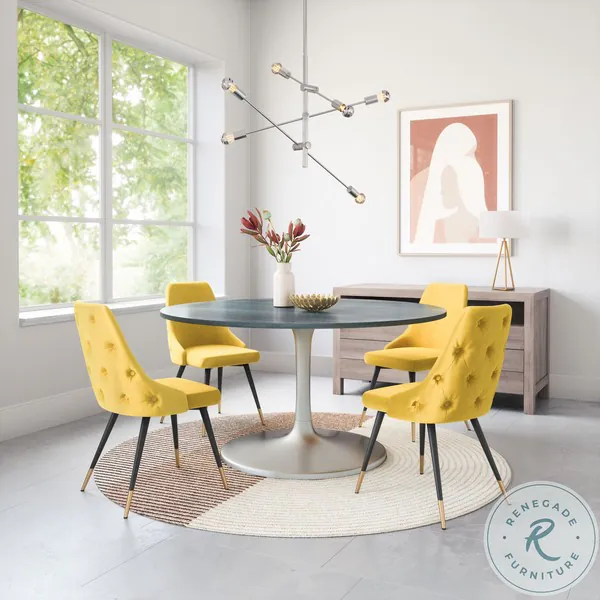 Metropolis Collection from Zuo Modern Living. The Metropolis Tables have raw marble tops with steel bases. These tables look great in any modern glam or deco dining area.