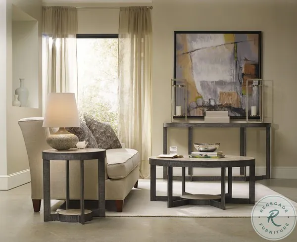 Mill Valley Travertine Stone And Gray Metal Round End Table