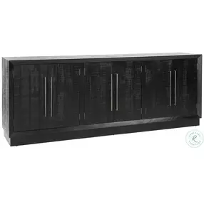 Black drifted oak frames lighter interior shelving for subtle but striking contrast. Glass doors allow for prized possessions to dazzle on display. Rear cutout for cord management.Features