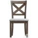 Moriville upholstered dining chair elevates the art of casual rustic style. With a distressed nutmeg finish, antiqued nailhead trim and textured polyester fabric, this upholstered dining chair with classic X back styling entices with warmth and earthy elegance. Cushioned seat accommodates lingering meals enjoyed in comfort.Features