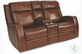 Mustang Brown Leather Power Reclining Living Room Set With Power Headrest And Footrest