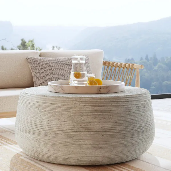 Nellie Light Gray Round Outdoor Concrete Top Coffee Table