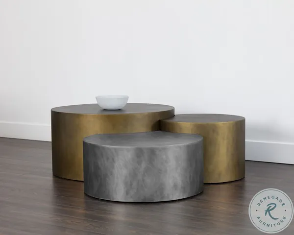 Neo Antique Brass And Nickel 3 Piece Occasional Table Set