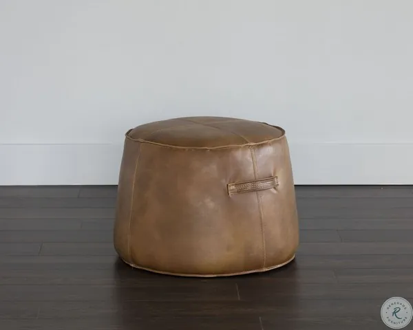 Noella Havana Dark Brown Upholstered Round Ottoman