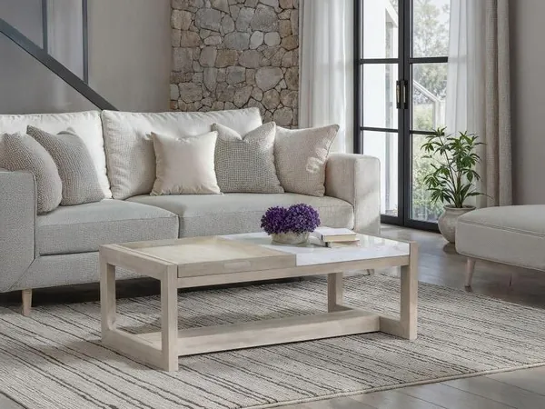 Northcrest Gallery Buff and Antique Silver Rectangular Marble Top Cocktail Table