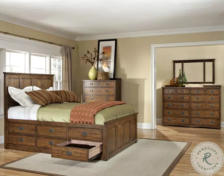 Oak Park Mission Double Sided 9 Drawer Captain Bedroom Set