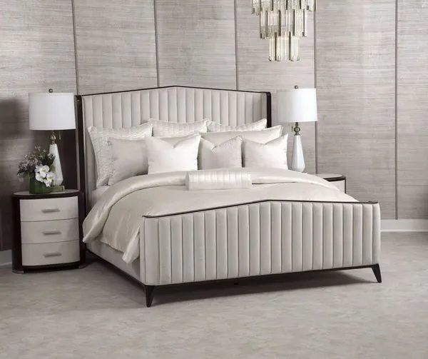 Abound with glamour, the Oliver comforter set showcases a modern style perfect for elegant homes. This sets main fabric features a subtle texture with hints of gold and embroidered accents on the accessories. Its solid ivory hue blends effortlessly with a range of color palettes and aesthetics, while the velvet embroidered pillow delivers a dash of uniqueness.