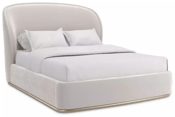 Romance is alive with the debut of the Opal Bed. The voluptuousness of this bed is derived from its soothing lines, soft finishes and plump overstuffing of its sweepingly curved back. The luxuriousness of the bed is enhanced by being fully upholstered in Alabaster faux-mohair velvet. Peeking from under the bed is a slim plinth wood base that glimmers in Charcoal Leaf. Available in Queen and King sizes.