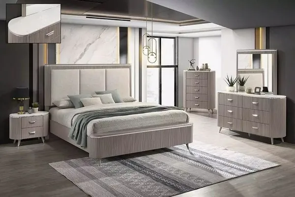 Opal Light Taupe Upholstered Panel Bedroom Set