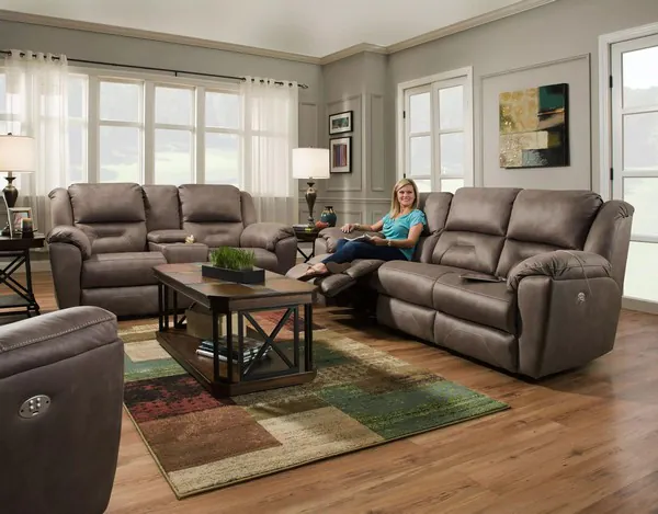 Pandora Slate Leather Power Headrest Reclining Living Room Set with USB