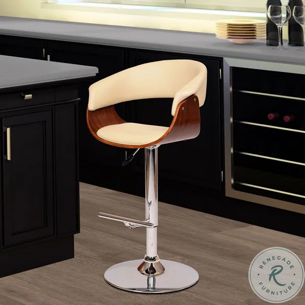 Paris Cream Faux Leather Adjustable Swivel Bar Stool