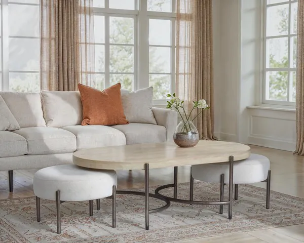 Parkcrest Edgecomb Gray and Weathered Antique Nickel Oval Occassional Table Set with 2 Ottomans