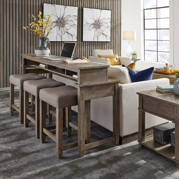 The essence of the urban living furniture is its unique ability to fit many different styles-Rustic, casual, contemporary-The Parkland Falls collection has both beauty and function. Square cocktail with lift top can be use for a laptop or a snack while watching your favorite shows. The versatility of this group makes the sofa table double as a TV console.