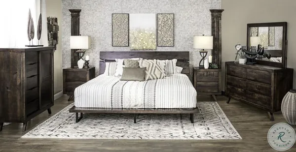 Pasco perfectly combines elements of exotic styling and contemporary design in a solid wood bedroom collection that is both modern and rustic simultaneously. Drawers feature a live edge that is beautiful and functional for use a a drawer pull. You will find aspects of mission and mid century modern style in the bed and storage pieces with bowtie accents used to embellish the priimitive styling.