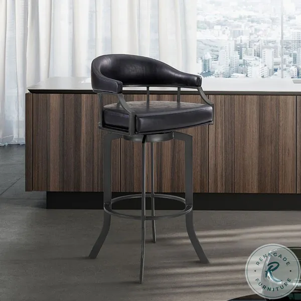 Pharaoh Black Faux Leather And Mineral 30" Swivel Bar Stool