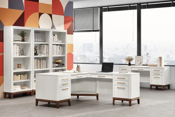 Pomona Soft White 68" Executive L Desk with USB Charging