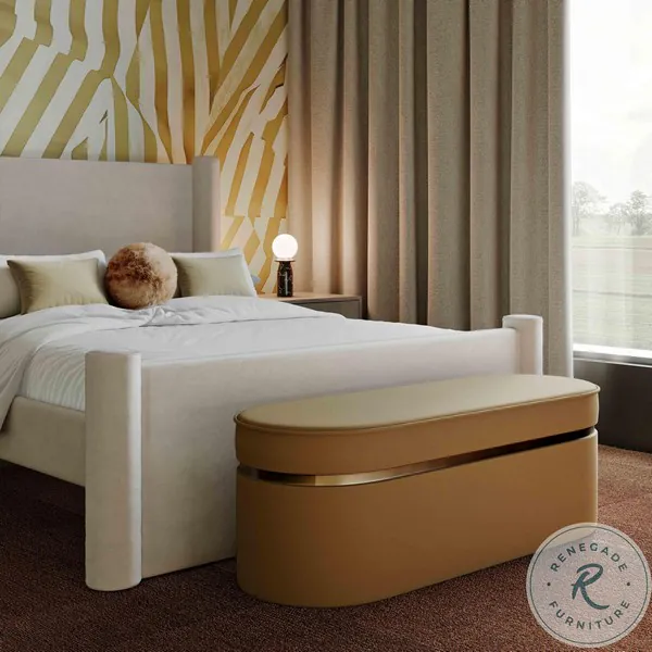 Indulge in the ultimate blend of luxury and comfort with the Pomp Velvet Bench, available in cream or honey, featuring high-density foam on top for a relaxing seating experience. A thin, gold stainless steel strip runs gracefully down the middle, adding an art deco touch that exudes understated glamour. Elevate any room's aesthetic with this timeless piece that's so in vogue right now.