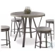Mixed media counter set with compact design and stylish gray finish. Portland features swivel counter stools with stretchers for added strength and comfort and the round dining table fits well in any dining setting.Features