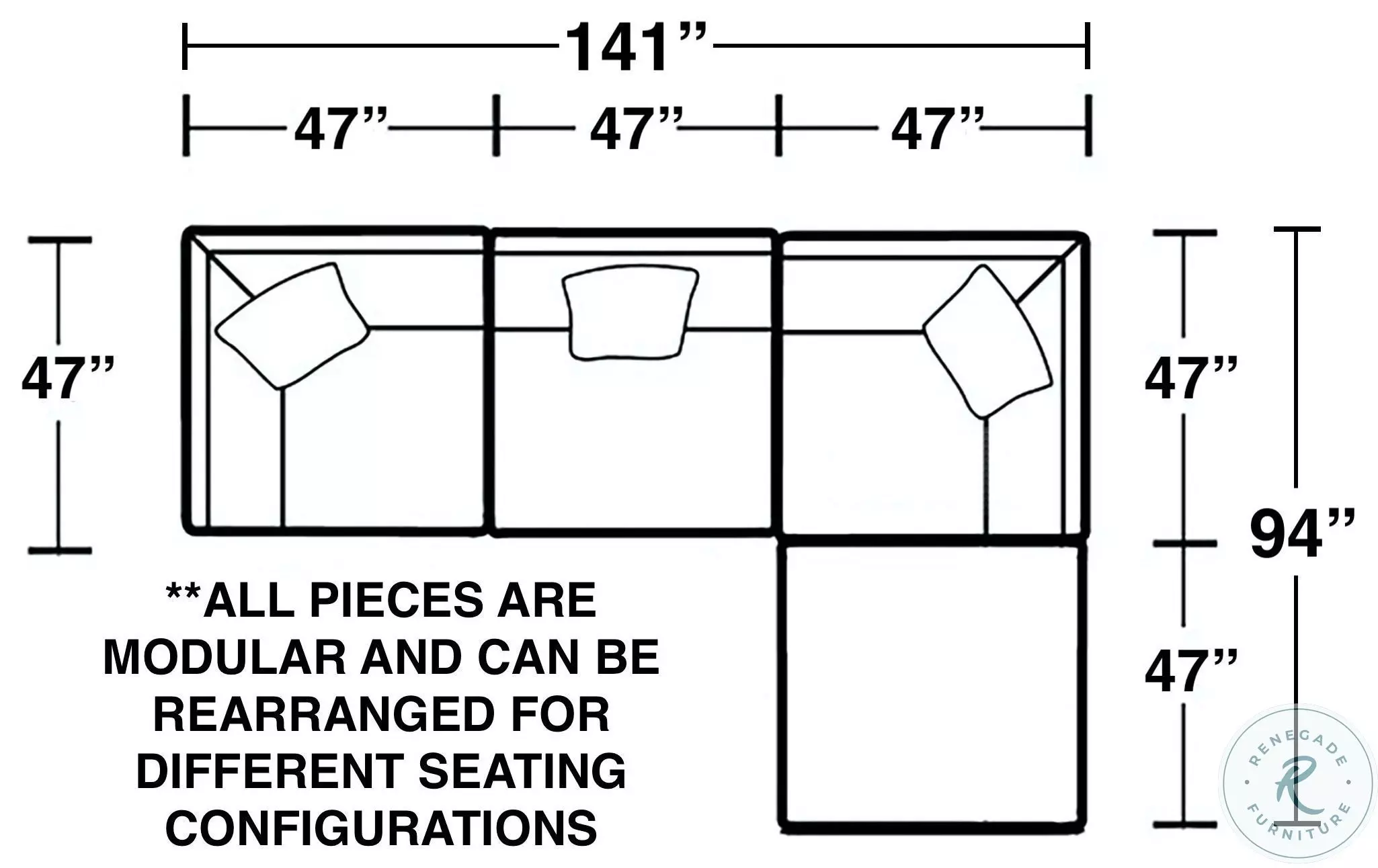 2-Corner Chair, Armless Chair & Ottoman (Dimension)