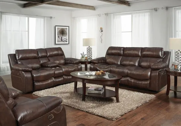 Positano Cocoa Leather Reclining Console Loveseat With Storage