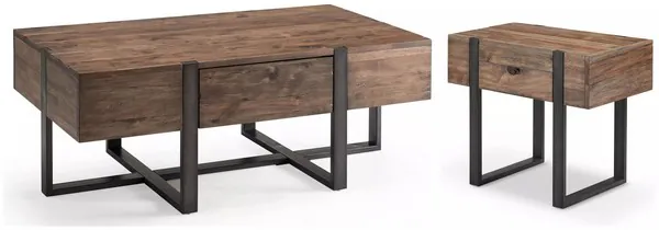 Prescott Rustic Honey And Distressed Iron Large Rectangular Occasional Table Set