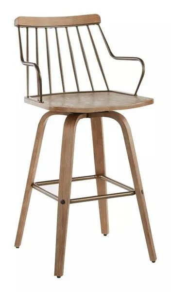 Preston White Washed Wood And Antique Copper Metal Swivel Counter Height Stool