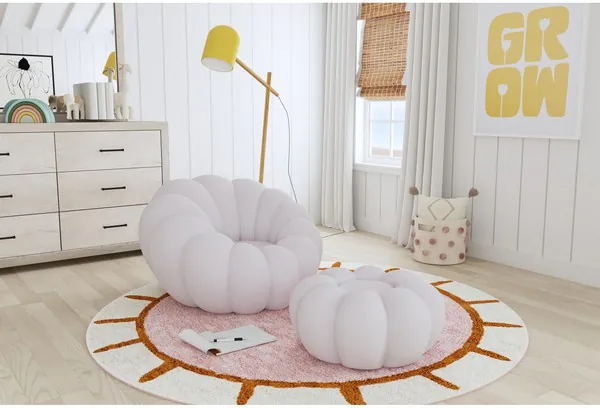 Pumpkin Gray Upholstered Swivel Chair and Round Ottoman