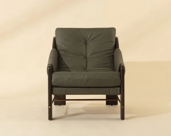 Rafferty Ludlow Dark Olive Leather Upholstered Lounge Chair