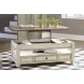 This lift top Occasional Table Set is traditional cottage styling taken to a new level. Antiqued two-tone finish blends a chipped white with a distressed wood finished top for a double serving of charm. Crafted with quality dovetail construction, this coffee table with drawer and open shelf space melds function with exceptional form.Features
