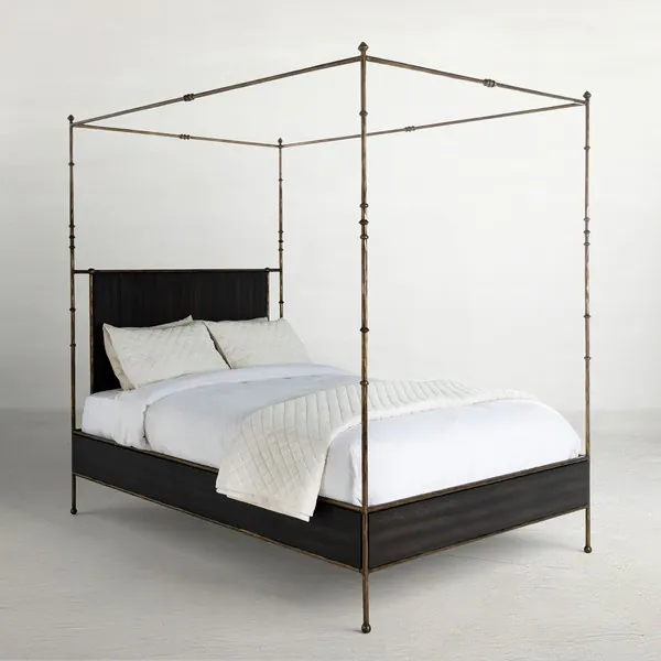 Reese Cerused Forest Black and Dark Antique Brass Queen Canopy Bed