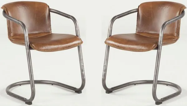 Regina Distressed Brown Leather Dining Chair Set of 2