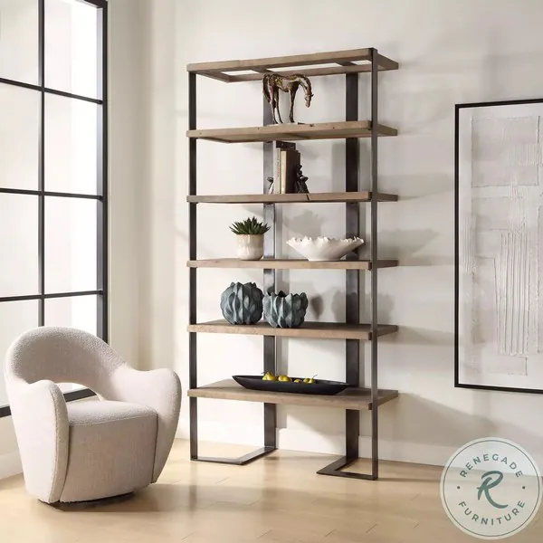 Regon Natural Oak And Oxidized Black Etagere