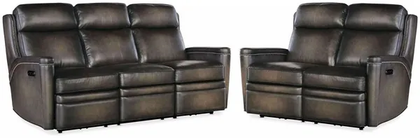 Remington Grey Leather Power Reclining Living Room Set with Power Headrest