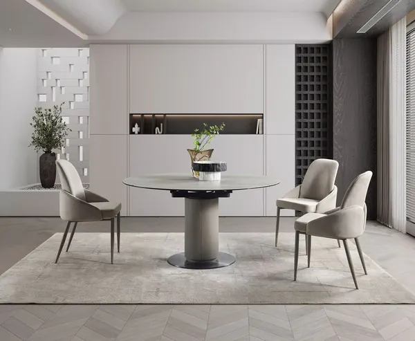 RH 130 Taupe Slate Matte Ceramic Extendable Dining Room Set