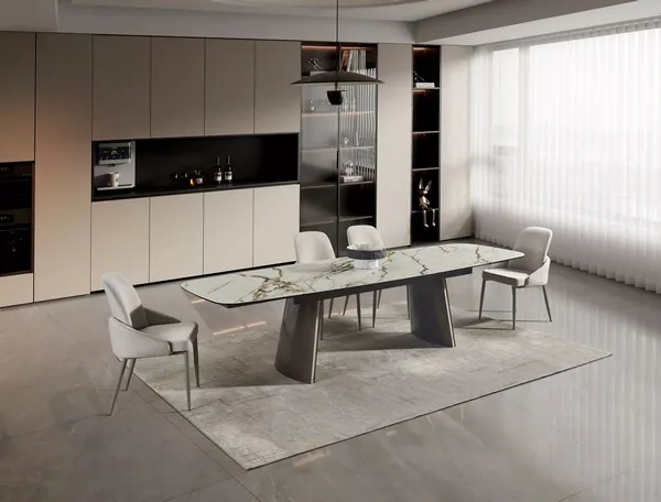 RH 888 Matte Ceramic And Bronze Extendable Dining Room Set