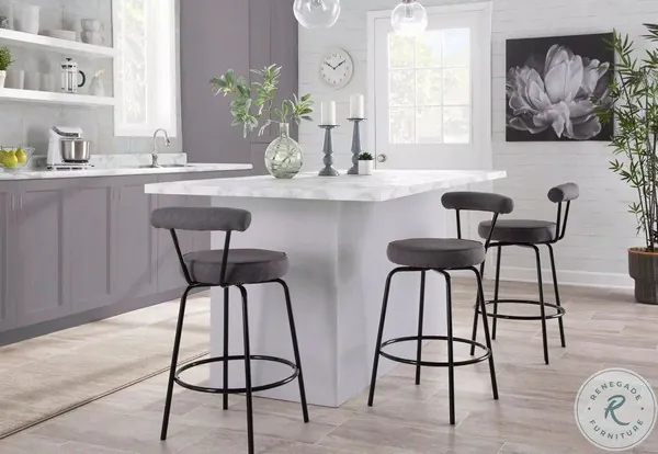 Rhonda Charcoal Fabric And Black Steel Swivel Counter Height Stool Set of 2