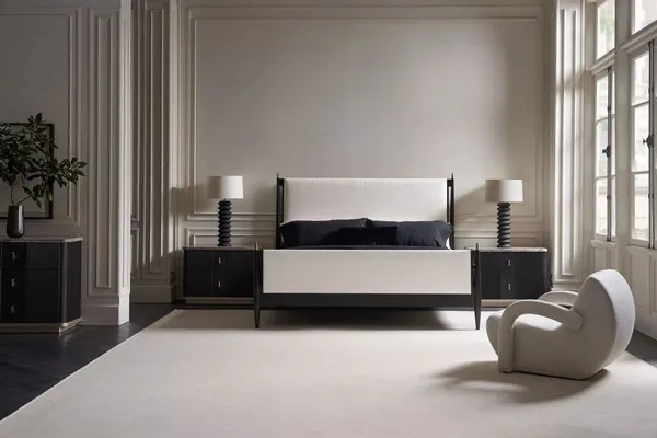 Rhythm Black Stained Ash and Neutral Metallic 2 Drawer Small Nightstand with Travertine Top
