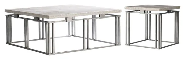Riverton Travertine Stone And Silver 48" Square Occasional Table Set