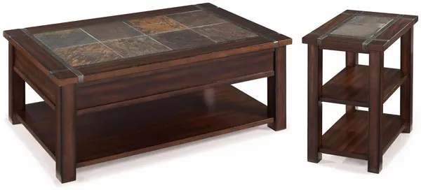 Roanoke Cherry And Slate Rectangular Lift Top Casters Occasional Table Set