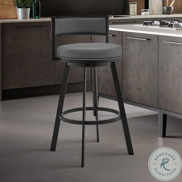 Roman Gray Faux Leather And Black Metal 26" Swivel Counter Height Stool