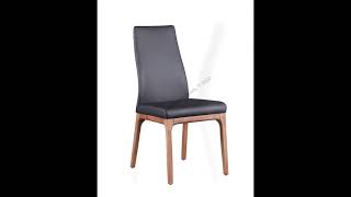This modern contour back side chair is upholstered in black faux leather, supported by a solid wood frame with walnut finish.Features