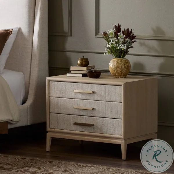 Rosenell Natural Oak Veneer Closed 3 Drawer Nightstand