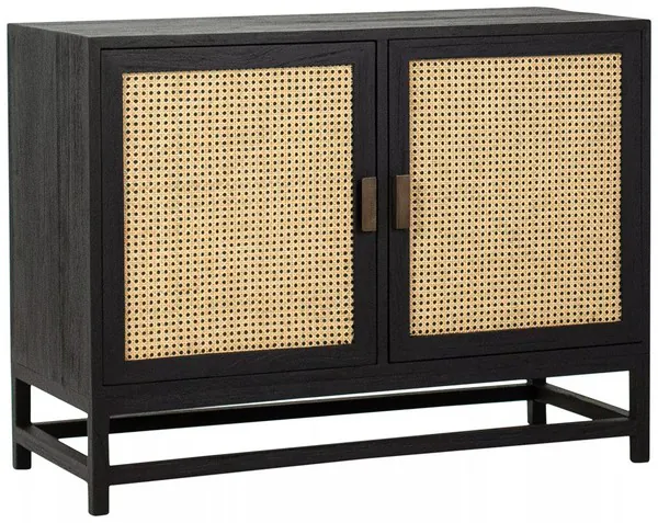 Royett Antique Black And Natural Rattan Door Panels Cabinet