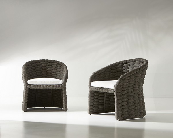 Salinas Nordic Gray and White Performance Fabric Outdoor Arm Chair