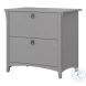 Keep your home office organized with a storage solution that's as beautiful as it is functional. The Bush Furniture Salinas 2 Drawer Lateral File Cabinet creates a casual feel in your home office with decorative wood details, tapered legs and curved base rails inspired by Mission styling. Two file drawers accept legal and letter size documents and open on smooth full-extension ball bearing slides so you'll have no trouble reaching papers all the way in the back. The File Cabinet's height matches that of the Salinas 60W L Shaped Desk with Storage (sold separately) for the option of creating a coordinated look in your personal workspace. Available in your choice of attractive Antique White, Cape Cod Gray and Vintage Black finishes with alluring Tumbled Pewter drawer pulls, the country charm of this file organizer looks great wherever you call home. The 2 drawer lateral filing cabinet is tested to meet ANSI/SOHO quality standards for safety and performance and is backed by the Bush Furniture 1 Year Manufacturer's Warranty. Complete your space with coordinating items from the Salinas Collection.Features