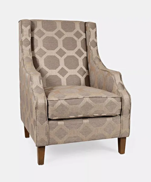 Sanders Collection from Jofran. The elegant angled style and unique fabric of the Sanders accent chairs has a transitional finish with subtle luxe highlights. Mixing the best of both worlds, the classic feel of the chairs are given an exciting new look with a bold geometric pattern. Available in Two Fabric Finishes.