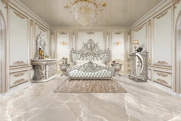 Sandoval Beige and Champagne King Upholstered Panel Bed