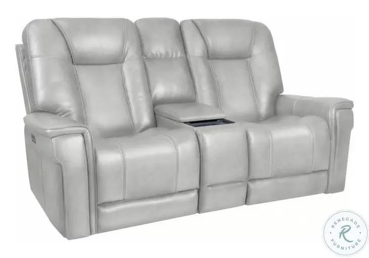Sanibel Rainer Dove Lay Flat Power Reclining Console Loveseat with Power Headrest And Lumbar